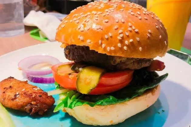 失重烧烤汉堡,觉得最好吃的一道菜,汉堡面皮软,牛肉饼也够软,还有培根和酸黄瓜,有一种巨大双吉的感觉,一层一层都有惊喜感,口感丰富。整口是咬不下来的,可以拆分来吃。