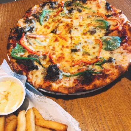 披萨很好吃,美式的,不像必胜客是那种厚披萨,是很薄的,烤箱温度掌握不错,芝士吃起来口感正好,牛肉粒也很丰富,很好吃。