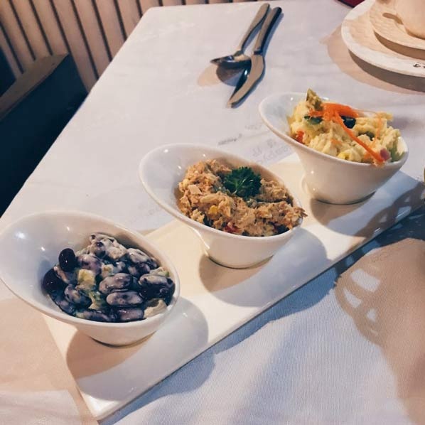 经典沙拉拼盘,比较推荐这个沙拉,一次可以尝到三种口味。土豆沙拉和金枪鱼沙拉发挥稳定,豆子的那个比较惊喜,虽然鸡肉不多,但是整体平衡不错,酱里有股淡淡的芥末味道。