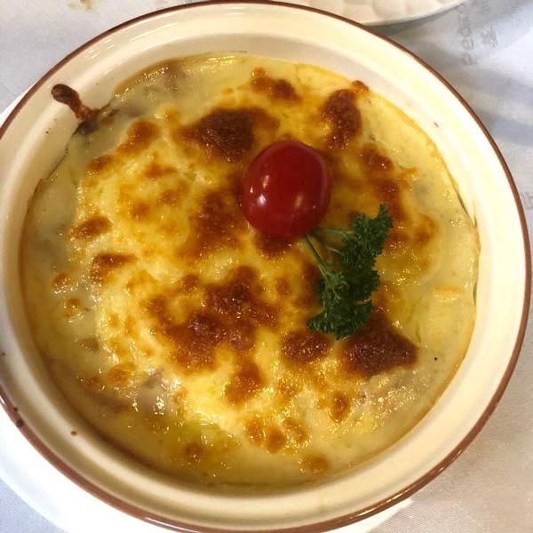 奶油焗杂拌,满满的热量啊,但是这么好吃,热量高点就高点吧。有土豆泥、豌豆、培根、蘑菇、奶油、芝士,大概是小编吃过最好吃的奶油汤了。