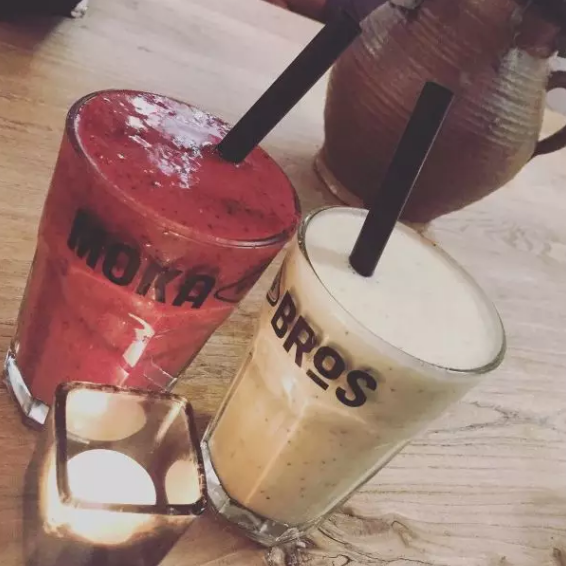 果昔,点了一杯莓类奶昔,满满一大杯~莓子果昔:黑莓+树莓+蓝莓+香蕉,有少许的碎冰,微凉,夏天的傍晚喝超爽,喝起来的口感是酸酸的有一些籽的渣渣,不知道为什么喝完就觉得自己瘦了好多!哈哈哈哈哈,开始抛弃碳酸饮料,学会健康合理的喝天然打成的果昔啦。