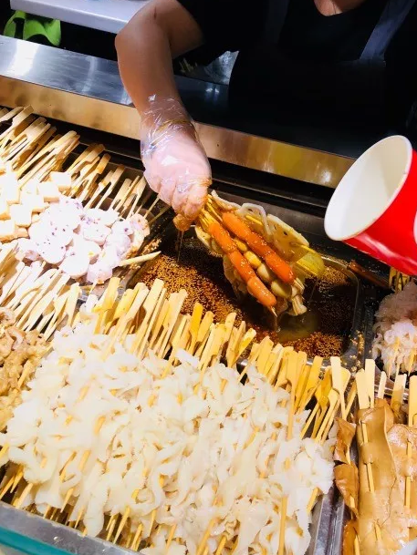 串串都是自助选择,然后店员拿到锅里涮熟之后蘸上酱料就完成了,速度很快,所以等的人比较少,这点好评!有麻辣和椒麻两种口味,个人感觉椒麻更好吃,越吃越辣!