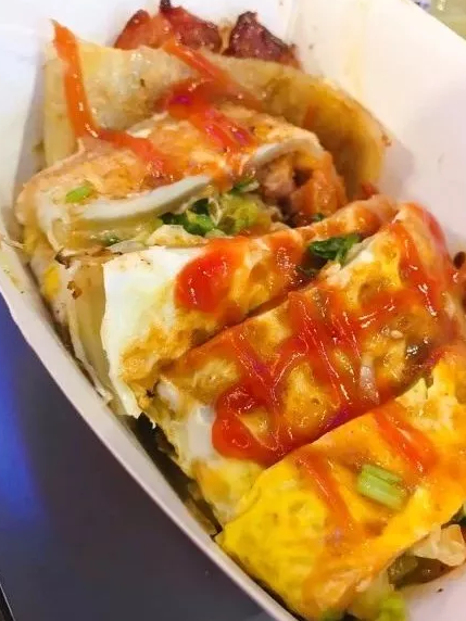 奥尔良鸡排味的也超级推荐啊!香香脆脆的薄脆,加上新鲜的豆芽,刷上酱之后酸甜的口感,简直香爆了!而且一定要趁热吃,一下子就被他家的口感俘获了!