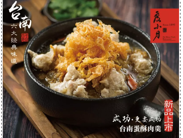 肉羹是传统羹类代表,台湾人有羹就能下饭。台南蛋酥肉羹采用,多道纯手工制作工艺,古早味十足。