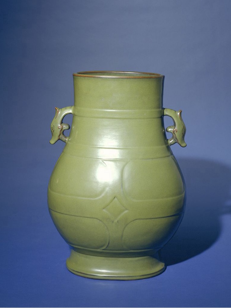 茶叶末釉牺耳尊,清乾隆,高51厘米,口径24×19厘米,足径26.7×21厘米。