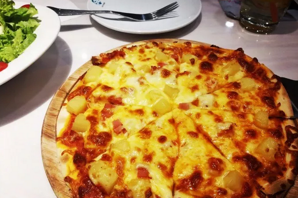 他家的披萨个头很大,适合2-3个人去吃,披萨面皮松软,淋上融化的芝士之后更是香甜美味,基本上吃上一块就感觉很饱了。