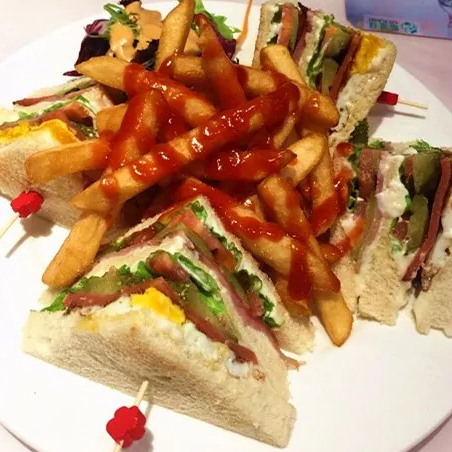 撸猫菜单:鲜榨猕猴桃汁 薯条三明治拼盘 披萨