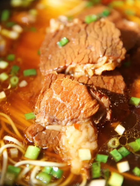 如果你是第一次来,建议先试试招牌的原汤牛肉面,汤底都是用大量猪骨鸡骨来熬制,牛肉片也切得厚厚的。每一碗面条端上来都是整齐的瓦片型,每碗面是标准的2两,面条到碗里必须是打两折,这是它家标志性的挑面手法。