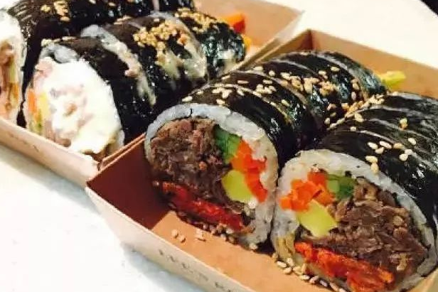 讲真,一提到这个紫菜包饭总有一种羞涩感,可能是它与众不同的名字吧。包饭的配菜就是常见的小黄瓜和胡萝卜,紫菜软中带着一股韧劲,尤其是沾上炸鸡酱之后,真的是,米饭都能吃出肉味!