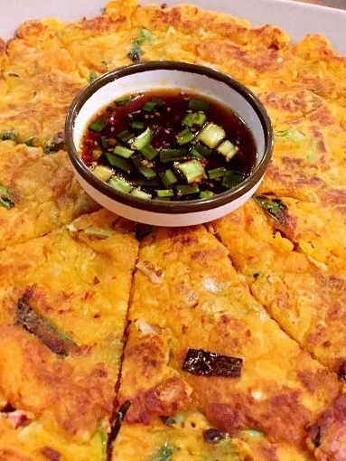 其实小编平时是不爱吃的泡菜的,但是他家的泡菜饼,完全没有泡菜的咸口,加入了鸡蛋面粉之后口感松松软软,蘸上调料就完全可以当做一道菜吃!也可以把年糕五花肉裹在泡菜饼里面吃,一卷一卷吃到停不下来!