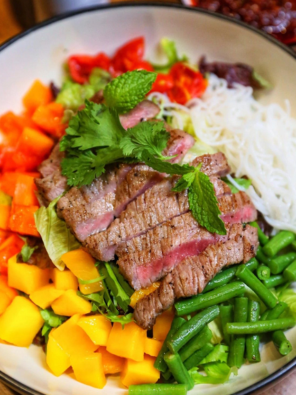 排粉、芒果、牛肉放在一起吃,有种迷之和谐的口感。如果沙拉都长这个样,我大概早就瘦了。
