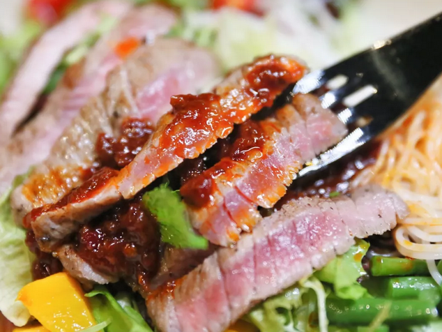搭配的泰式辣酱在沙拉里很少见,浇在刚刚煎好的澳洲牛柳上香辣重口又不会太过分。