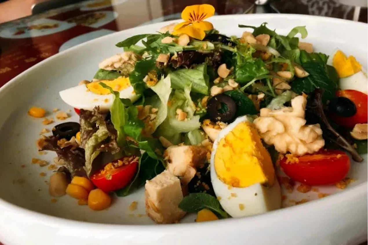 凯撒沙拉,淋上店内自制的沙拉酱,醇厚的蛋黄酱融合了淡淡的香料,再配上口感香脆的面包块,正可谓色香味俱全。