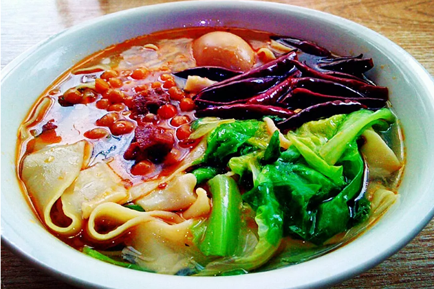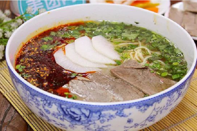 说起兰州的面小吃货们第一反应必然是兰州拉面,然鹅!兰州并没有拉面,他们的传统面食叫做兰州牛肉面!讲究“一清二白三红四绿五黄”,一清(汤清)、二白(萝卜白)、三红(辣椒油红)、四绿(香菜、蒜苗绿)、五黄(面条黄亮),整碗端上来之后,不仅卖相可观,味道更是鲜美清爽,称得上是夏日里最受欢迎的一种面。之所以被误传为拉面是由于他们面条的做法,要将面团在案板上不断地摔打,对折,再摔打,这样的做法才使得面条修长圆润,有咬头!这种手法也叫做顺筋。