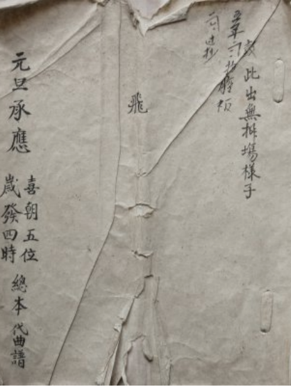 曲本,又称曲谱,依戏中角色出场先后为序记录所有的唱词,旁注音符和节奏。