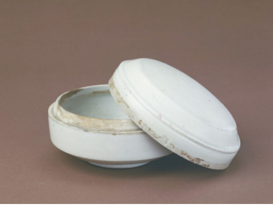 此盒为典型的唐代定窑产品。定窑遗址位于河北省曲阳县,烧瓷始于唐而终于元,时间长达六七百年之久,产品尤以白瓷而闻名。