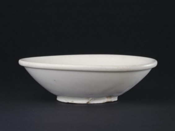 邢窑白瓷胎骨坚实、致密、厚重,胎土白而细洁,瓷化程度较高,扣之作金石声。玉璧形底更为唐代邢窑白釉碗的典型特征。