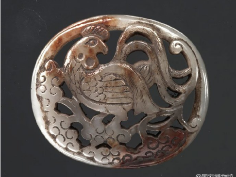 白玉雕鸡佩寓意腾达与吉祥,这只玉佩一开始可能是如意上的饰件,俗称“瓦子”,细看鸡爪子,站在云纹上。鸡,“吉”也,和祥云结合,也就吉祥腾达了。