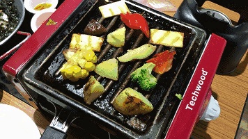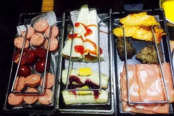 小菜在烤盘上冒着油,滋滋的响,散发着诱人的乳香,可以体验自己烤制的乐趣,也可以请店家帮忙。