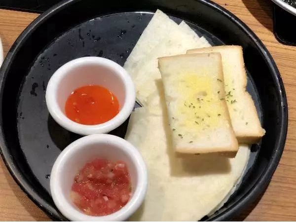 墨西哥饼搭配烤菜吃味道超赞,辅以两种不同口感的酱料,据说其中的番茄酱是店内特别研制的,量很足,几个人分食足够吃到饱。