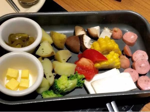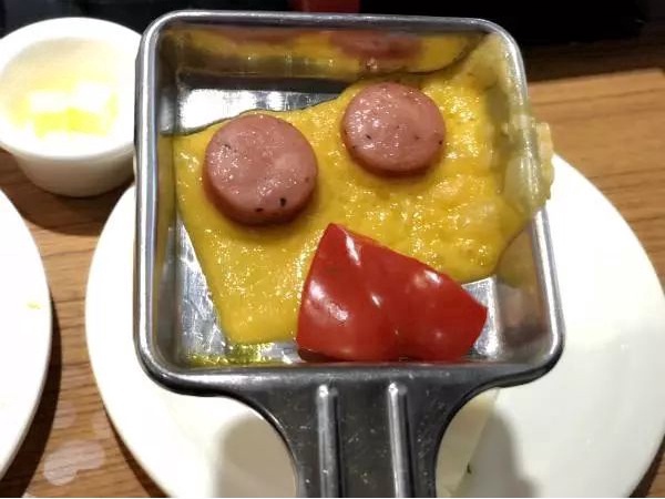 除了美味的芝士肋排,店内特色的板烧奶酪也是不错的,可以搭配小菜装饰成人脸的形状,还挺有意思的,放在专门的奶酪烤盘里烤制的时候,散发着浓浓的奶香,让人垂涎欲滴。