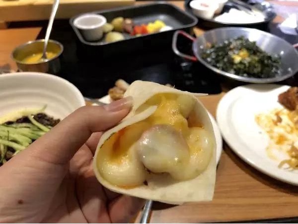 用薄饼卷着板烧奶酪吃,味道也是棒棒哒!