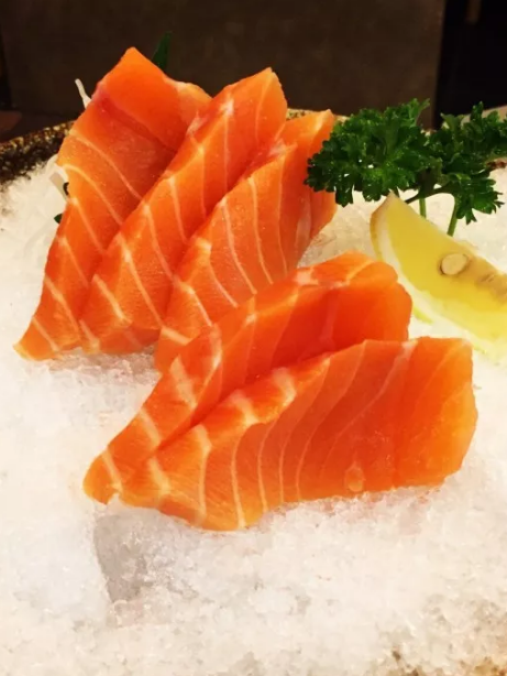 刺身三文鱼,讲真,第一次看到那么厚的三文鱼片,以前吃的都是切开薄薄的,今天这个肥厚的肉,简直香到怀疑人生。