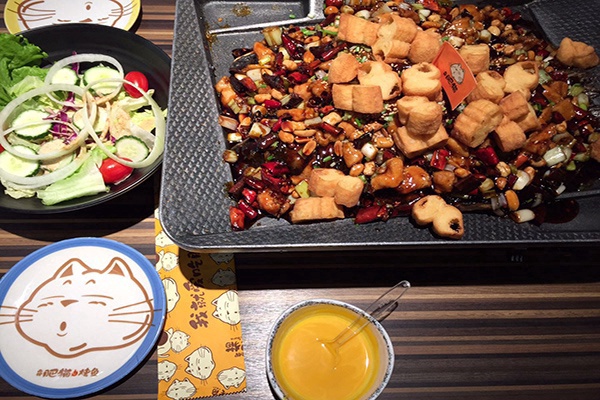 肥猫烤鱼人气很旺,印象最深刻的当然是大吼三声“我就爱吃肥猫”就有优惠的噱头了。在等烤鱼上桌前,有多种小配菜,类似韩国料理的小菜,所有的都可以免费无限次续添,南瓜粥甜甜的,暖胃又营养。这儿的烤鱼都是按照份来收费,大小合适,外焦里嫩,汤汁入味。