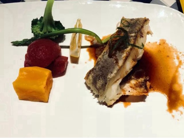 香煎比目鱼,鱼的表面裹上面粉和黄油,经过煎制后,鱼肉放出的汁水配上柠檬,鱼肉香与清柠檬香完美融合。