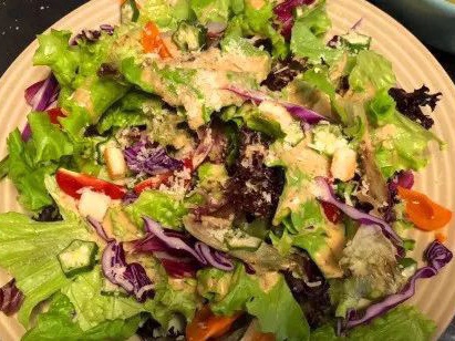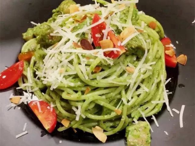 野菜青酱意面,用三种本地野菜榨成泥并调制成酱料,加入罗勒、坚果和帕玛森干酪制作而成,野菜的清香搭配奶酪的浓郁,小编只能疯狂打call。