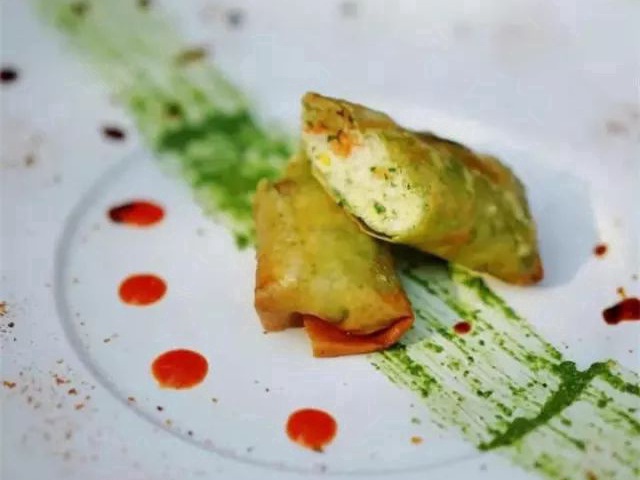 小院儿海鲜春卷,用罗非鱼泥、蔬菜、香草酱制作的春卷的馅料,再搭配上中国特色的炸春卷方式,一口咬下去,既有家的味道又兼具异国风味。