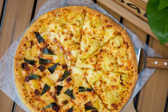 垃圾桶披萨。作为当家卖品实至名归,饼皮酥脆,馅料相当丰富,配料有青红椒、萨拉米香肠、培根和芝麻菜等,还有深得芝士爱好者喜欢的一层厚厚的芝士,奶香味十足,吃起来非常过瘾。