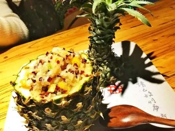 还有一道菜是小编的心头爱,忍不住要推荐给大家——海鲜菠萝炒饭。有虾和鱿鱼、还有酸酸甜甜的菠萝,米饭香糯可口,一端上桌就会被分分钟吃光光的节奏。