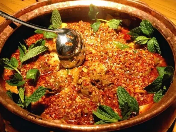 这家的招牌菜是铜锅肥肠鱼,肥肠量足且肥而不烂,鱼片鲜嫩。底下有很多小菜,豆皮、土豆、笋、白菜等,口感非常入味,对肥肠颇有偏好的小编觉得这味道真的很赞,重点是分量很足,满满一大锅,性价比也是超高的。