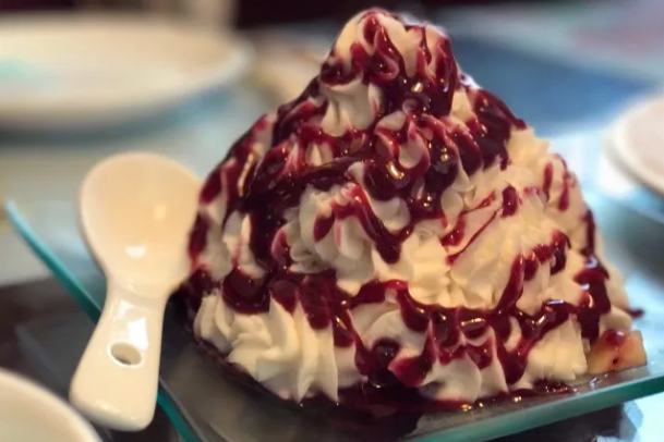 蓝莓山药,不愧作为餐厅推荐菜的第一名,果然有自己的独到之处,口感细滑,几乎没有颗粒感。甜度适中,有点像在吃微沙的冰淇淋。