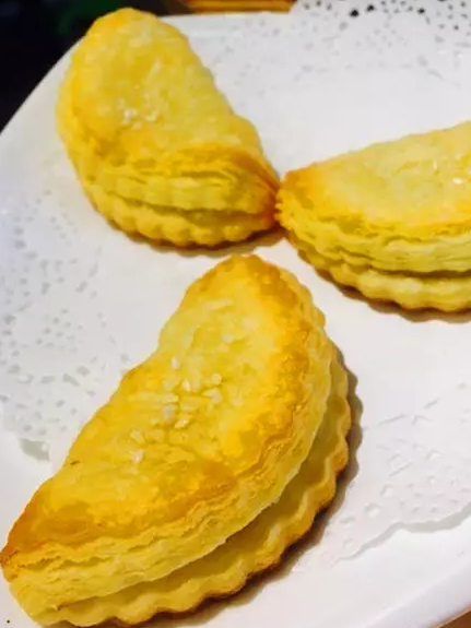 榴莲酥一定要端上来趁热吃,榴莲味道中夹杂着一股奶味儿,味道相当不错。