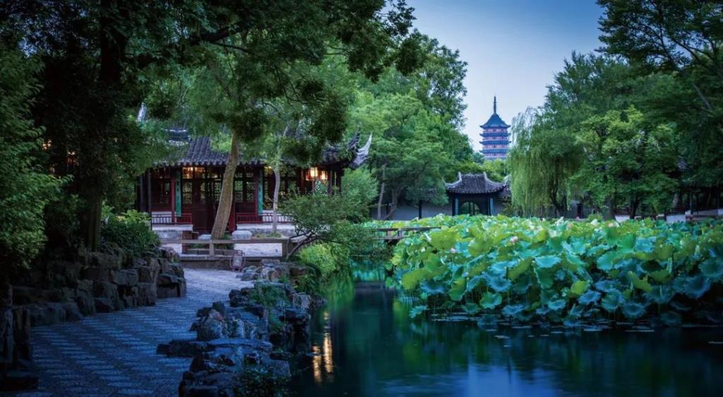 因此,园林的美是因人而异的,每个人的内心感受是不同的,比如在拙政园内远眺北寺塔,观者可能会关注荷花铺满水池的摇曳生姿,又有可能关注目光尽头的塔影,又或许会关注花木掩映间的建筑。