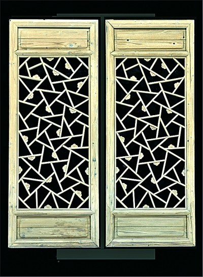 瘦西湖一处充满诗意的流云月影窗,就在展览入口处和观众见面,中国园林博物馆馆藏的古代及近代花窗,冰梅纹窗棂,花卉人物故事纹窗棂、花鸟纹窗棂等,无不显示了古代工匠的精巧技艺。从花窗的物理结构考察,虽然花窗的制作工艺是对几何原理的应用,但是其中依然能印证中国文化一脉相承的思维方式。“六幂”之美,尽在其中。在规矩中,尽含世间的千变万化。“六幂”是古代花窗制作中应用非常广泛的一种图案,它以两个顶心相对的等边三角形形成的交叉线为基线,有规律地增减损益,形成变化无穷的样式。常见的万字格、龟背锦、蜂窝式等图案都是六幂图案的衍生。观看时,我们不得不惊叹于古代匠人的科学思维。