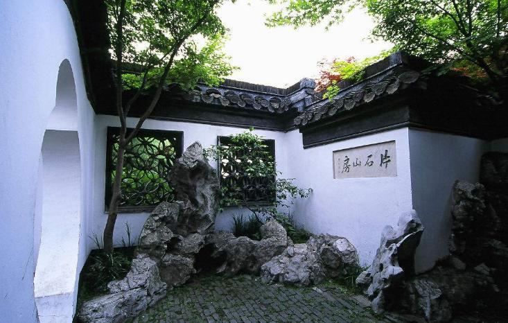 在扬州城南花园巷,又名双槐园,园以湖石著称。园内假山传为石涛所叠,结构别具一格,采用下屋上峰的处理手法。主峰堆叠在两间砖砌的“石屋”之上。有东西两条道通向石屋,西道跨越溪流,东道穿过山洞进入石屋。山体环抱水池,主峰峻峭苍劲,配峰在西南转折处,两峰之间连冈断堑,似续不续,有奔腾跳跃的动势,显出章法非凡的气度。片石山房南岸为水榭三间,横跨水面,遥望主峰依云,形成山高水长的立体画轴。榭东伸出曲廊与主建筑楠木厅连接。楠木厅西山墙面西为不系舟,恰与西南半壁书屋呼应,浑厚端庄的楠木大厅与嵯峨雄沉的壁山相对应,系铿锵结体。作为山房主景的山体,再现了石涛画中的奇峰、岗峦、谷道、坡矶、洞壑等,并与水体组成瀑布、叠泉、深潭、涧、溪、湖、池、水岫等景观。