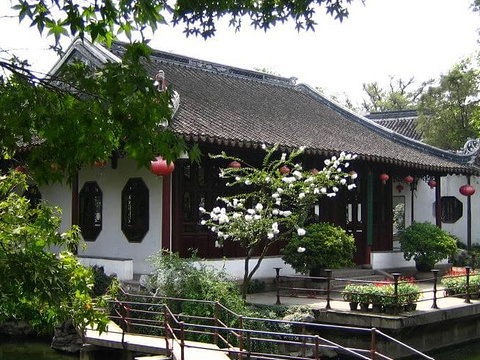 怡园为清光绪年间所建,园西旧为祠堂,园南可通住宅。因建园较晚,吸收了诸园所长,如复廊、鸳鸯厅、假山、石室等。全园面积约 9 亩,以复廊划为东、西两部。东部以庭院、建筑为主。入门循曲廊南行折向西北,至四时潇洒亭,廊由此分为二路:西行经玉虹亭、石舫、锁绿轩,出复廊北端小院洞门,达西部北端石山。南下至坡仙琴馆、拜石轩。后者为东部主要建筑,以北院立有湖石奇峰而命名;又因南院植竹、柏、山茶,严冬不凋,故又称岁寒草庐。西部以东西向的水池为中心,池南有鸳鸯厅,北称藕香榭,又名荷花厅;南称锄月轩,又名梅花厅;盛夏可自平台赏荷观鱼,严冬经暖阁寻梅望雪。池北岸假山以湖石砌为石屏、磴道、花台等,又建有金粟、小沧浪二亭。山西端渐高,下构石洞,上有小亭,玲珑精巧。池西尽处有装修华丽的旱船画舫斋。