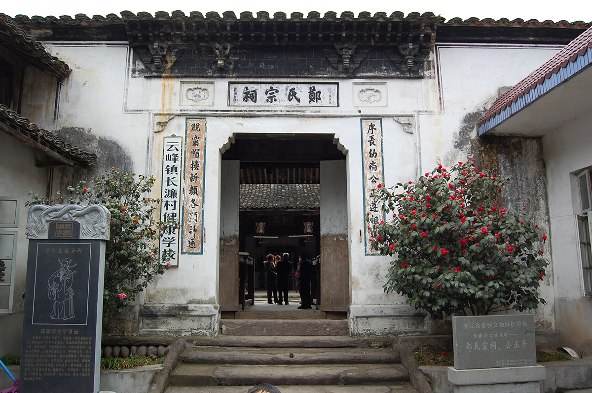 郑氏宗祠、公正亭位于长濂村中心,坐北朝南,明代建筑,二进九开间两厢式,东、西、北面为道路、民房。