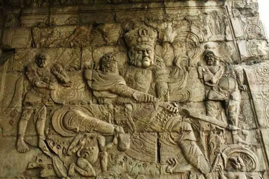 然而与此同时,云台上的佛像雕刻也融入了部分汉地的雕刻手法与传统审美。券洞内的四大天王像便是受到汉文化影响较多的造像,其中天王头戴的花冠与汉地佛教的毗卢冠非常相似,同为中部高、两侧低的造型,冠正中还嵌有佛像,并不是藏传佛教的风格。除此之外,浮雕造像中对于鬼卒形象的表现也符合汉地的雕刻传统。四大天王身边的鬼卒瘦骨嶙峋,样貌丑陋,其生动写实的形象完全是按照中原文化理念塑造的,与藏传佛教中的风格大相径庭。同时,四大天王和鬼卒的服饰也均属于汉地样式,而天王面露威严却并没有狰狞可怖的感觉,这也是受汉地文化制约所导致的。