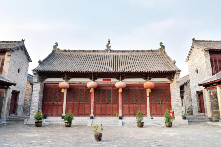 山门面阔三间,进深六椽,单檐悬山顶。三椽栿前后对接用三柱。中柱位置砌砖墙分隔前后,中柱间设板门,门枕石为清代抱鼓石狮。