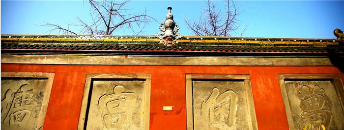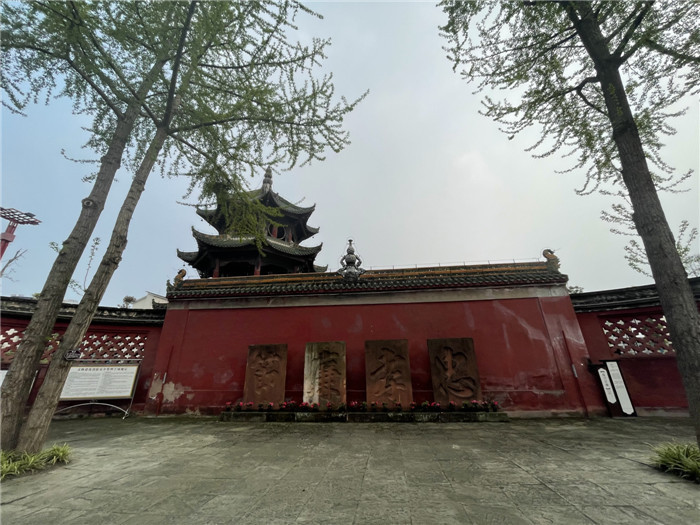 “三重檐式的牌楼建筑全国少有,屋面上各式各样的琉璃饰件,工艺精湛,堪称艺术精品。”细数犍为文庙的建筑特色,郑克成如数家珍,进门右手边的照壁上有“万仞宫墙”四个楷书大字,字均高约1.7米。墙体为青砖砌成,着朱红色涂料,呈现古色古香之风貌。