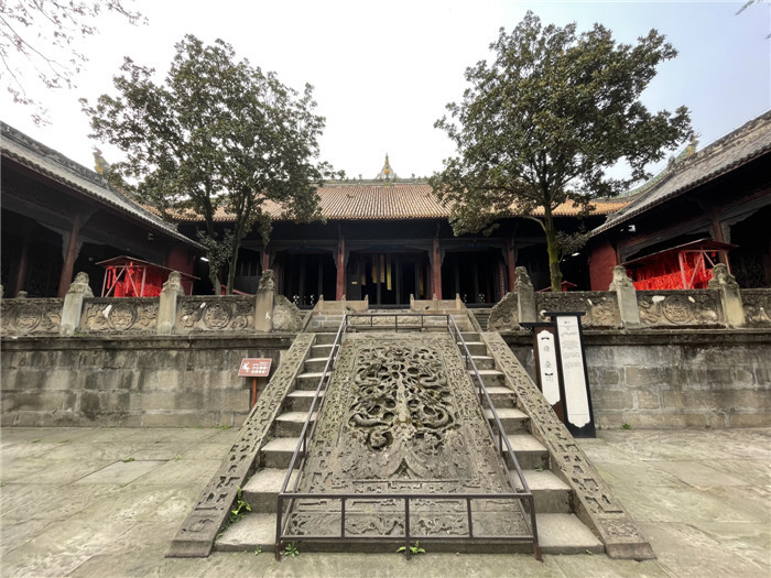 庄严凝重的万仞宫墙、波平如镜的泮池、气势恢宏的大成殿……犍为文庙以三进四合的院落形式组合形成一个功能齐备的祭祀场所,并与庙前东侧奎阁、节孝坊组成一个宫殿式的古建筑群。