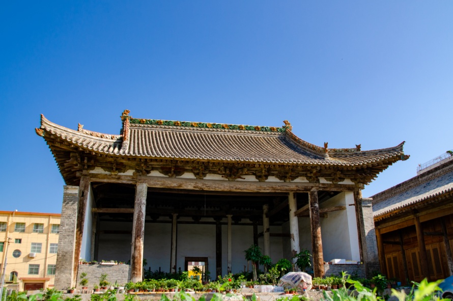 位于陕西省渭南市白水县原城关粮站四库院内的城隍庙献殿,为单檐歇山顶建筑,坐北面南,面宽五间12米,进深六椽10米,柱径0.4米,柱高6米,柱头托七架梁。西山墙嵌清光绪二十一年(1895年)重修城隍庙碑记。献殿前东侧偏殿为一单面坡硬山顶建筑,面宽36米,进深7.2米。