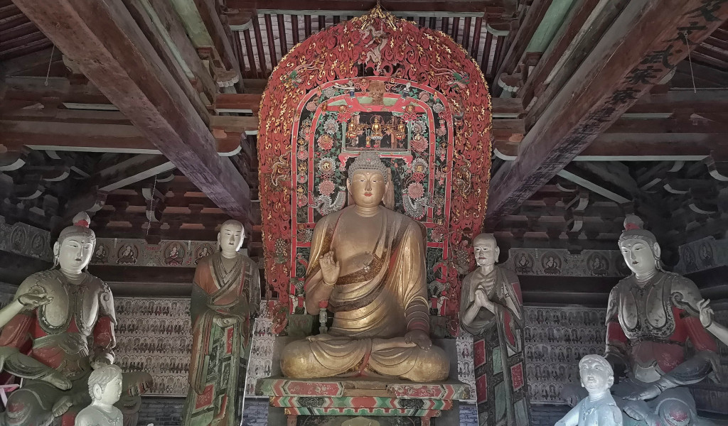 万佛殿内保存有十一尊五代彩塑,是除莫高窟外,全国寺观中保存至今唯一的五代彩塑作品。