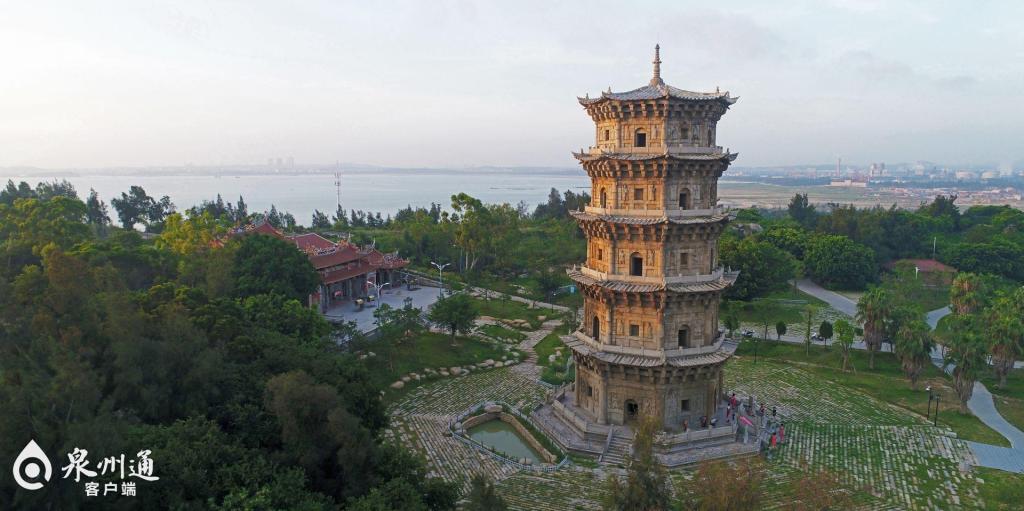 在六胜塔所在的文化公园,李国宏指着对面的海域介绍,这是泉州湾的出海口,对面海中较大的那座岛屿叫作大坠岛,旁边低矮的那座岛屿叫作小坠岛。大、小坠岛之间的航道在11世纪即被称为“岱屿门”,是船舶从泉州湾通往外海的必经之路。据南宋吴自牧《梦粱录》记载:“若有出洋,即从泉州湾港口至岱屿门,便可放洋过海,泛往外国也。”六胜塔与岱屿门主航道遥遥相对,出入泉州湾的船只均可在海面上清晰地以它为导航标志。