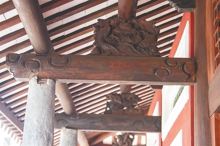 “根据清雍正十一年(1733年)的文献记载,城楼原先是重檐歇山屋顶,后来只剩了单檐。这次维修工程中,我们又恢复了重檐,具体细部风格参照同时期本地一般性做法。”海口市文物局蓝春宝介绍。蓝春宝全程参与了鼓楼维修工程。
