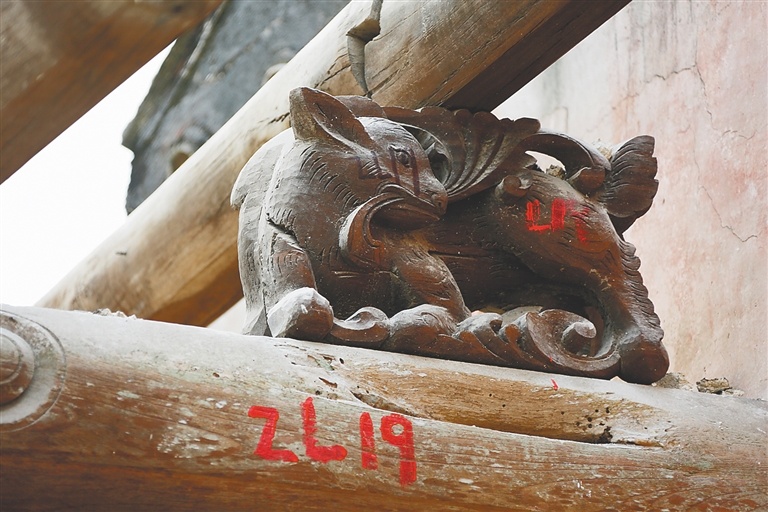 “在拆解之前,施工单位仔细研究了鼓楼的构件,把拆下来的每一个木构件都根据梁架点编上号,后期再根据编号重新装回原位。”蓝春宝说,鼓楼木构件很多,拆下来的木构件通过斗车运到附近的文庙暂存。